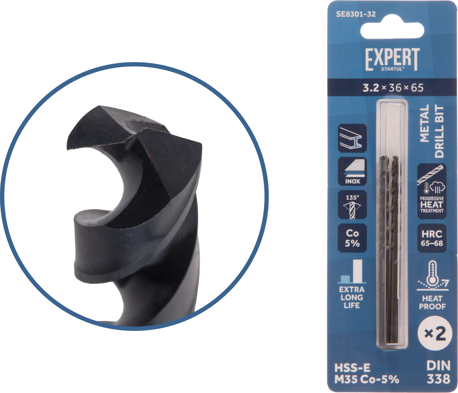 Сверло по металлу ц/х 3.2х36х65 мм HSS-Co, комплект из 2‑х шт Black EXPERT STARTUL