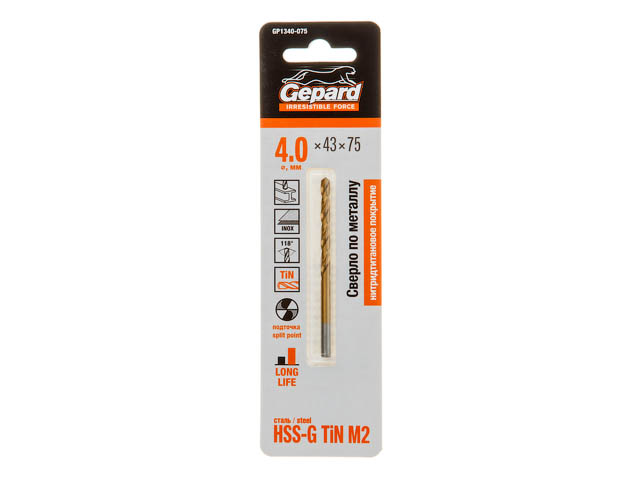 Сверло по металлу ц/х 4.0х43х75 мм HSS TIN GEPARD