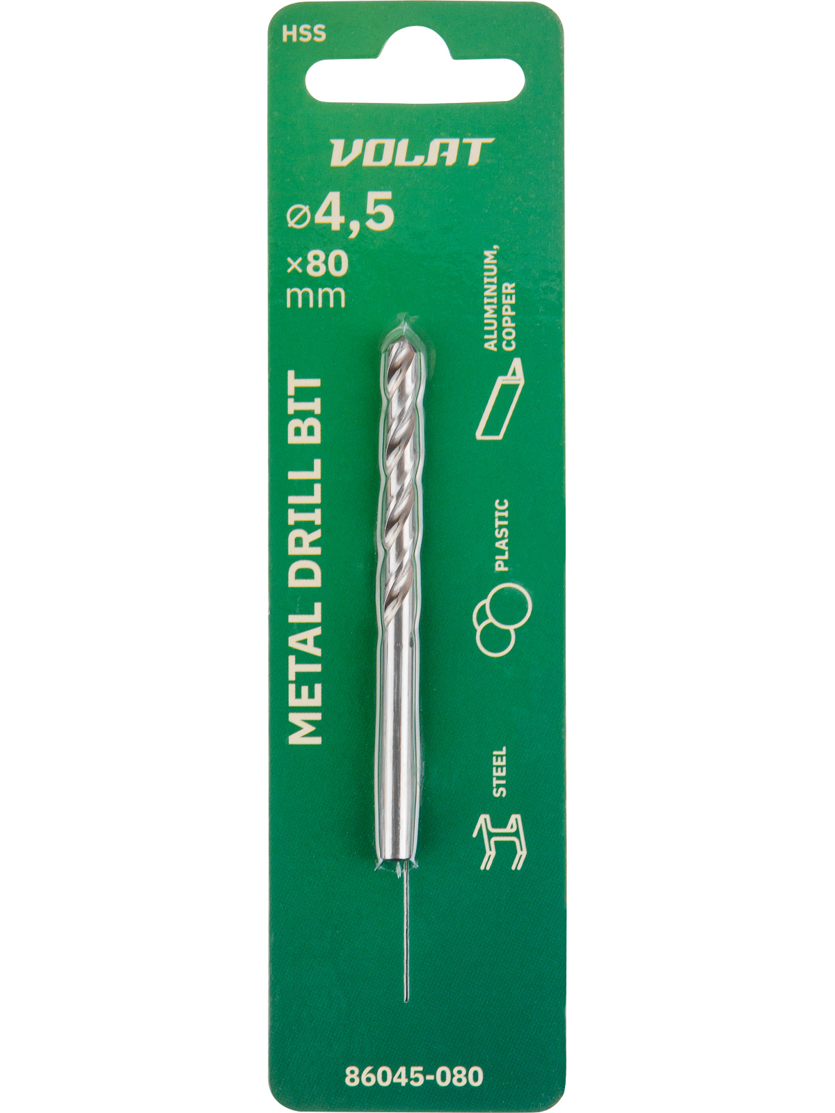 Сверло по металлу ц/х 4.5х47х80 мм HSS ВОЛАТ