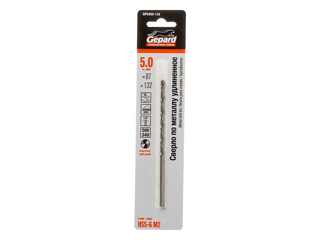 Сверло по металлу ц/х 5.0х87х132 мм удлиненное HSS‑G GEPARD