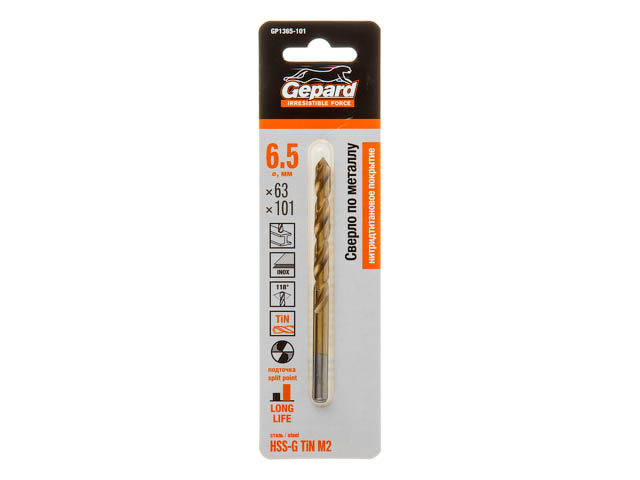 Сверло по металлу ц/х 6.5х63х101 мм HSS TIN GEPARD