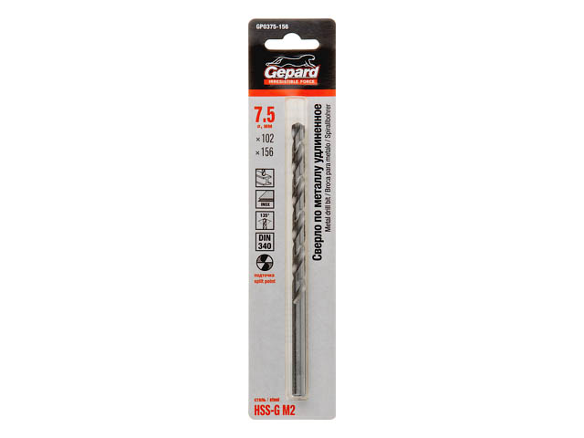 Сверло по металлу ц/х 7.5х102х156 мм удлиненное HSS‑G GEPARD
