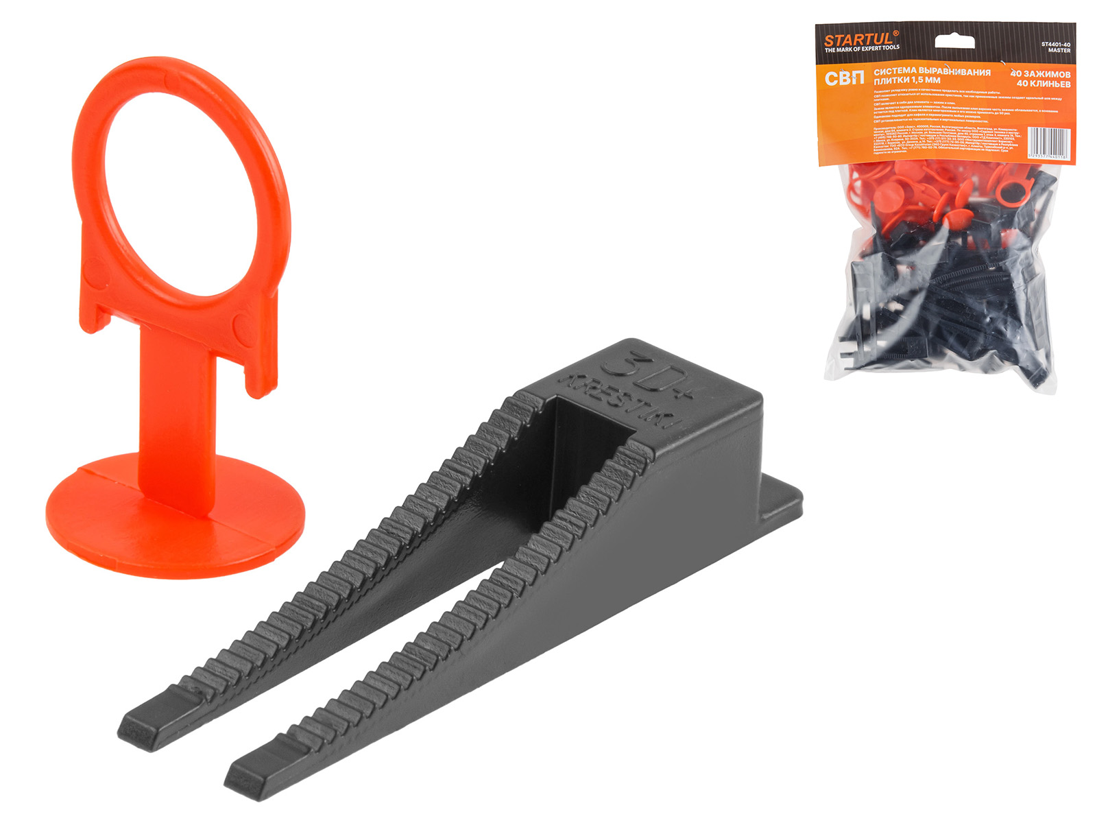 Система выравнивания плитки СВП 1,5мм (зажим 40шт+клин 40шт) STARTUL MASTER (ST4401-​40)