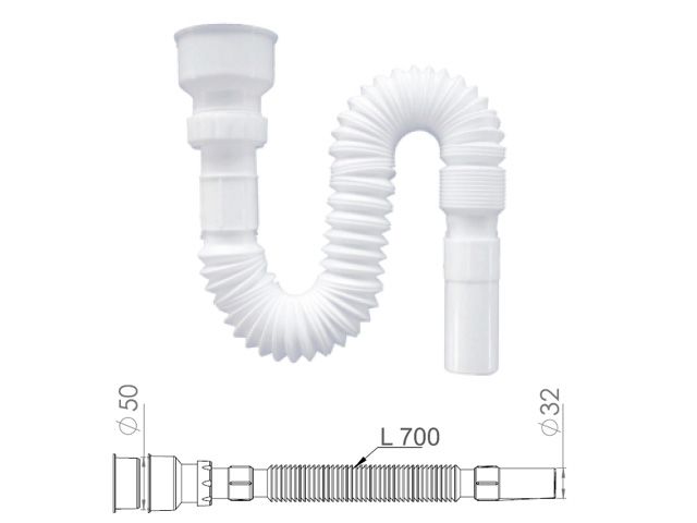 Выход в кана­ли­за­цию 32 мм, дли­на 700 мм