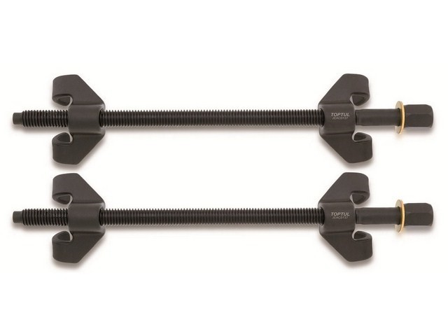 Съемник-стяжка пружин TOPTUL состоит из высокопрочных хром-молибденовых захватывающих элементов и свинцового регулировочного винта длиной 270 мм. Инструмент предназначен для стяжки и фиксации винтов пружины, удобен при эксплуатации в ограниченном пространстве под колесной аркой, и способен выдерживать высокие нагрузки. Съемник применяется с 1/2″» воротком или 21 мм гаечным ключем. Рекомендуется для профессионального использования.