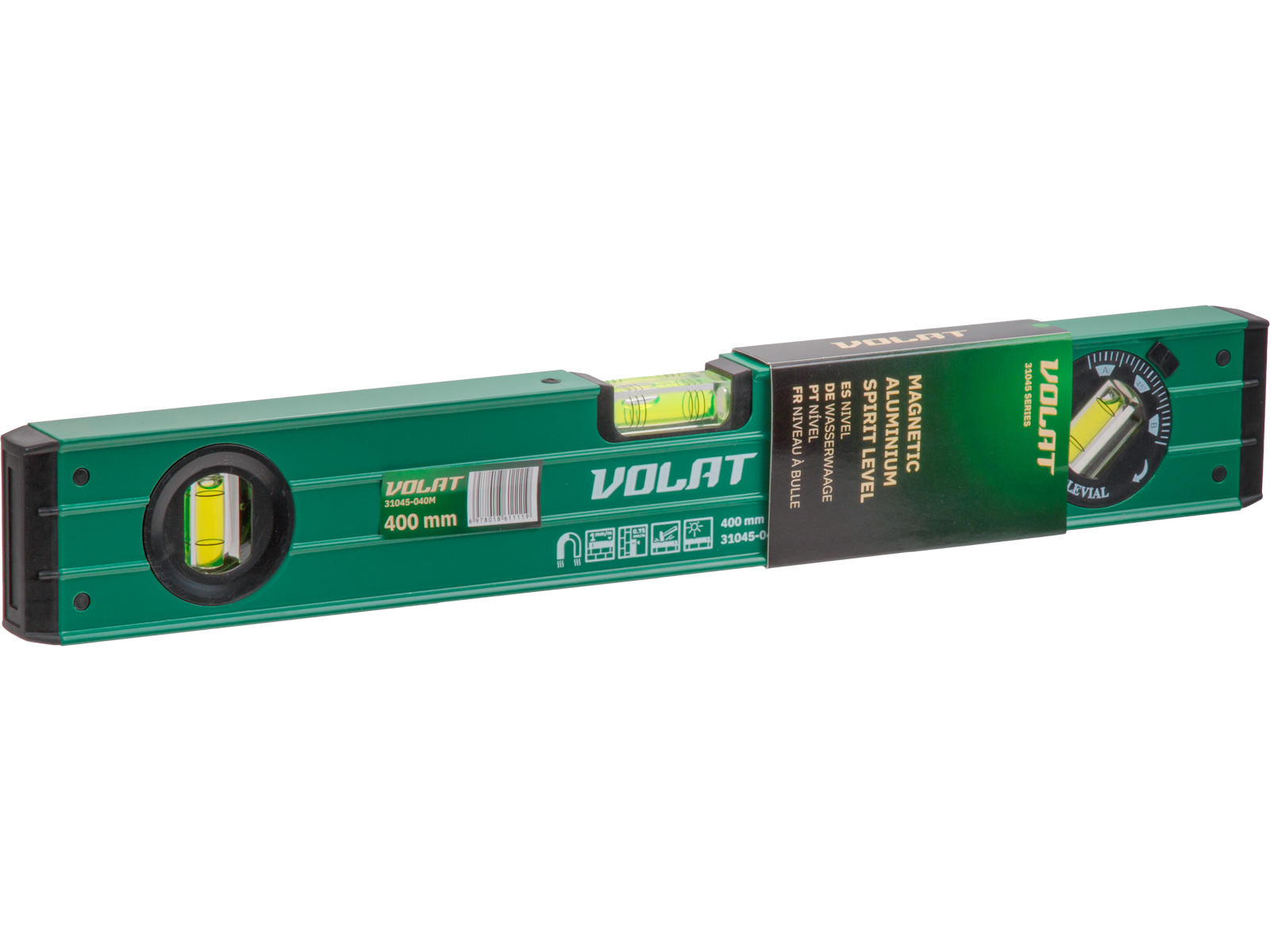 Уровень оснащен тремя ампулами (горизонтальная, вертикальная, под углом 45°),