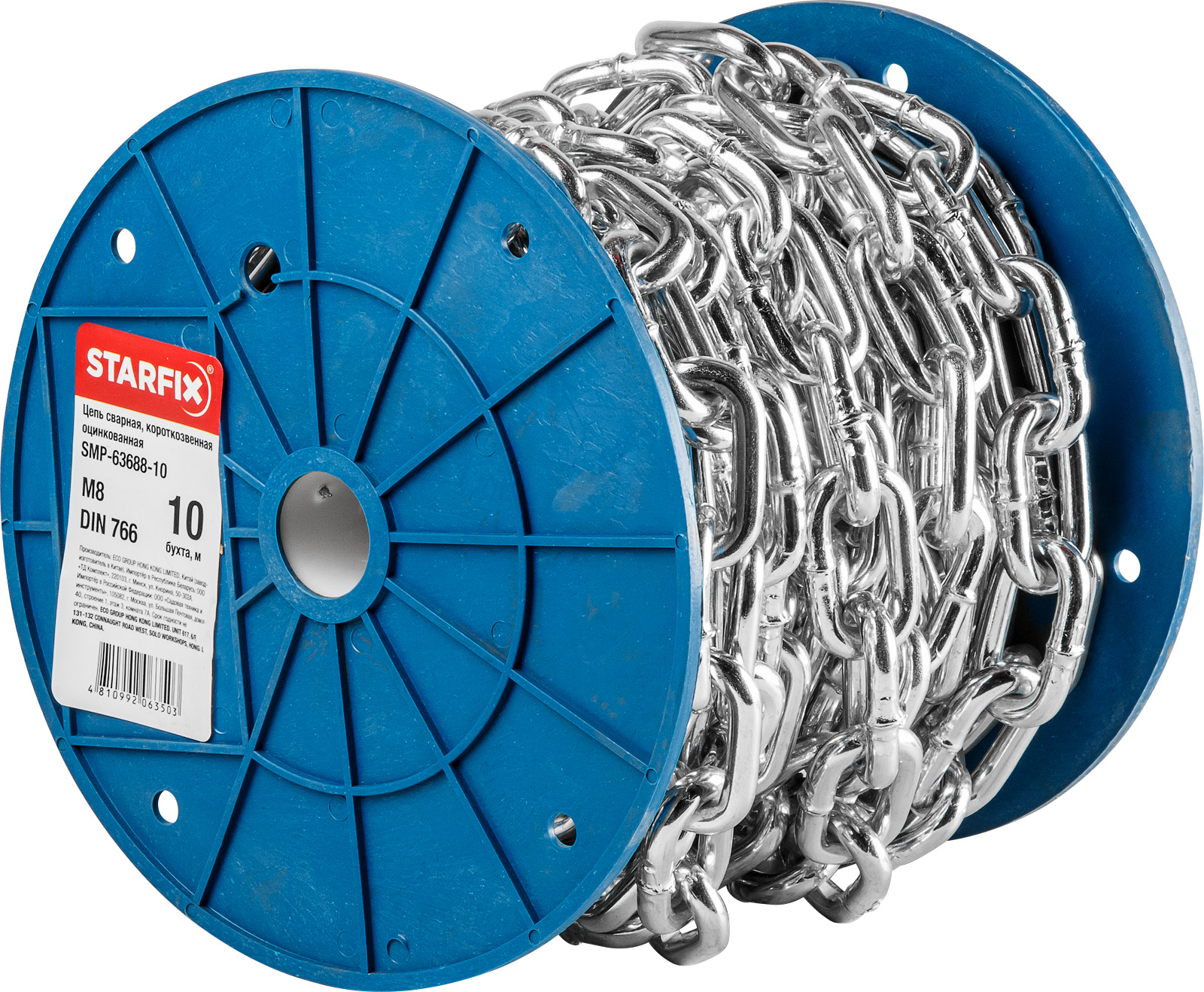 Цепь сварная короткозвенная, оцинк. М8 DIN 766 (бухта 10 м) STARFIX