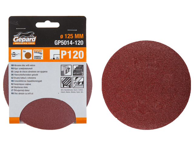 Шлифлист 125мм круг Р180 5шт. GEPARD (GP5014-​180)