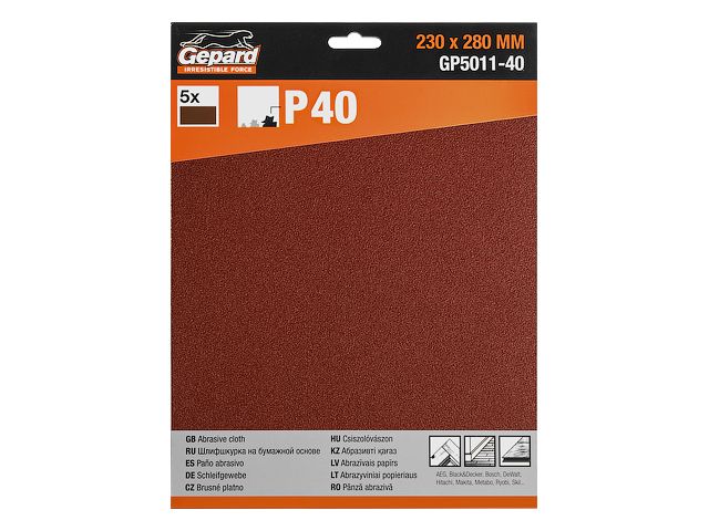 Шлифлист 230х280мм Р40 бум.осн. 5шт. GEPARD (GP5011-​40)