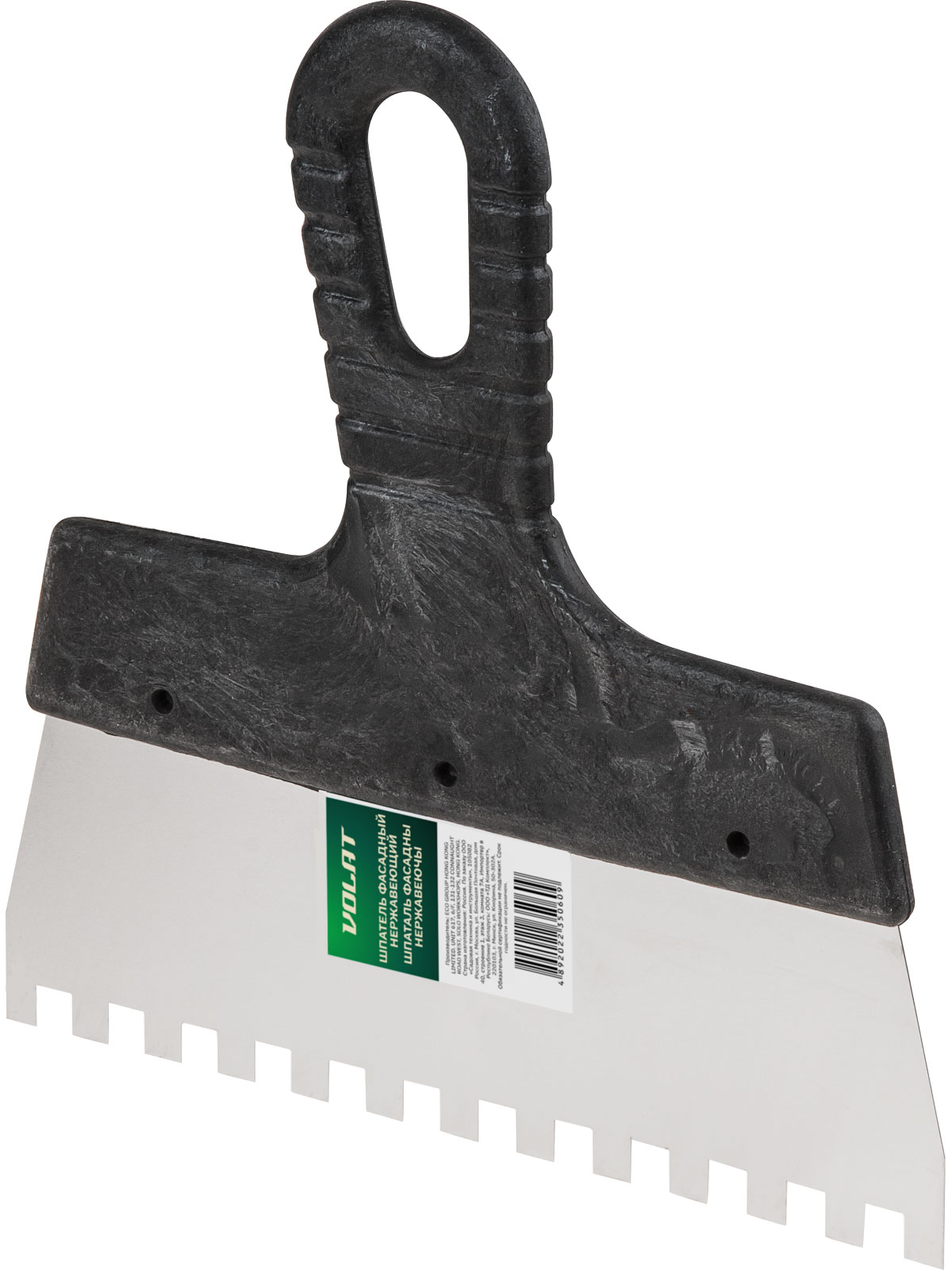 Зубчатый шпатель представляет собой вспомогательный инструмент для ручной укладки плитки. Металлические зубья предназначены для равномерного распределения клея или другой строительной смеси по поверхности укладываемого элемента. Толщину слоя при этом можно варьировать, изменяя степень нажатия на шпатель и угол наклона зубьев. Удобная ручка из пластика имеет отверстие для хранения шпателя в подвешенном положении.