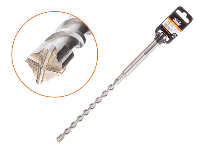 Тип и назна­че­ние: бур (свер­ло) для свер­ле­ния отвер­стий в бетоне, арми­ро­ван­ном бетоне, кир­пич­ной клад­ке, при­род­ном и искус­ствен­ном камне. Осна­щен твер­до­сплав­ным карбид-​вольфрамовым нако­неч­ни­ком с четырь­мя режу­щи­ми кром­ка­ми. Цен­три­ру­ю­щий нако­неч­ник обес­пе­чи­ва­ет точ­ное засвер­ли­ва­ние. Кор­пус бура выпол­нен из зака­лен­ной кон­струк­ци­он­ной леги­ро­ван­ной ста­ли и тер­мо­об­ра­бо­тан. Канав­ка U‑образной фор­мы спо­соб­ству­ет эффек­тив­но­му отво­ду шла­ма. Под­хо­дит для интен­сив­ных нагру­зок,